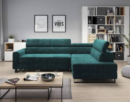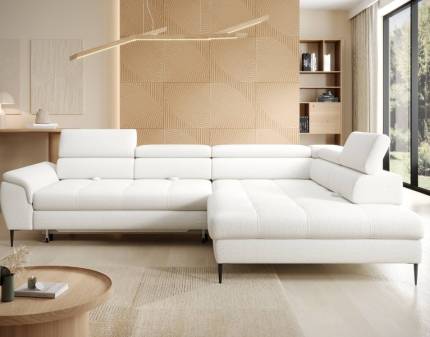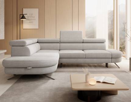 Coltar extensibil ALESSIO cu lada pentru depozitare, tetiere reglabile, personalizabil 250x190cm
