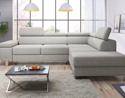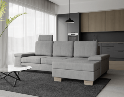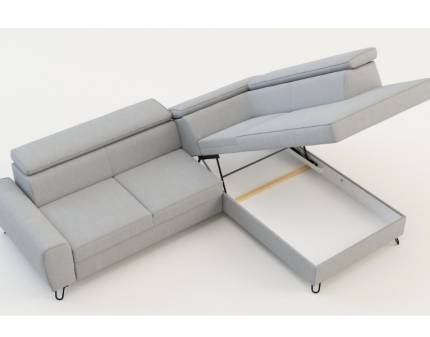 Coltar extensibil AVANTI cu lada pentru depozitare, tetiere reglabile 255x223cm