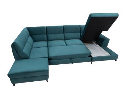 Coltar extensibil MAGIC catifea, cu lada pentru depozitare 288x186cm