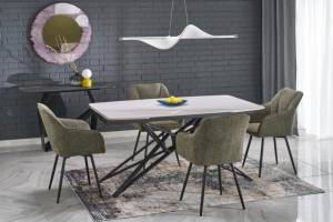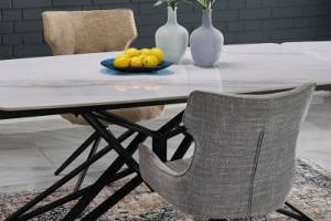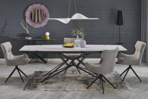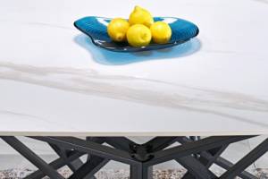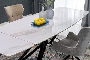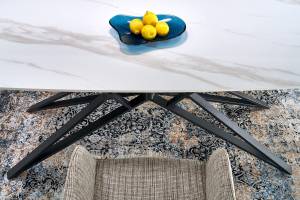Masa extensibila ALFREDO din marmura alba, metal negru 160-240x91xH76cm