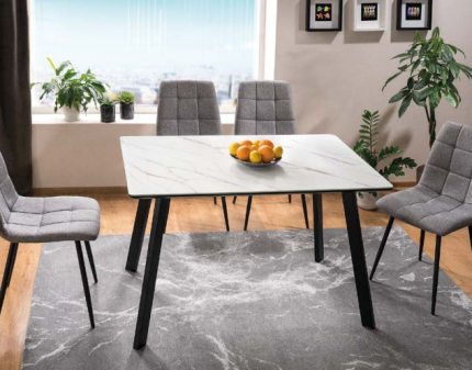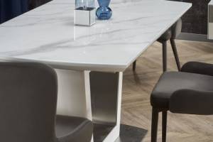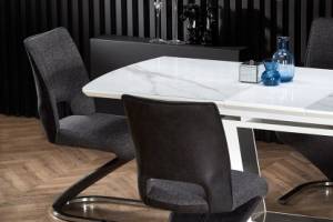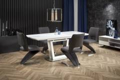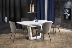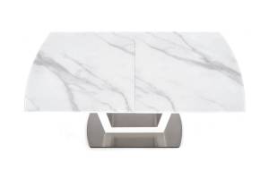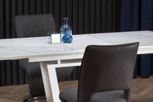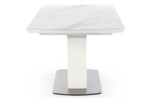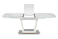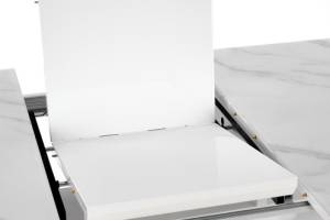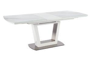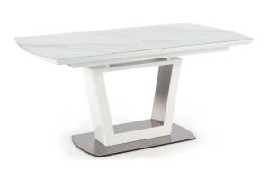 Masa extensibila BLANCO din sticla si MDF cu efect de marmura alba, metal alb 160-200x90xH76cm