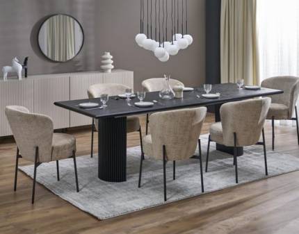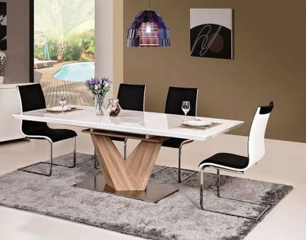 Masa extensibila DOLCE CERAMIC WHITE din ceramica cu efect de marmura alba, MDF stejar 180-240x95xH76cm