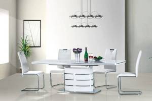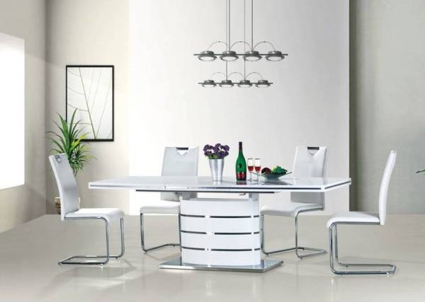 Masa extensibila FANO din MDF alb lucios, metal crom 180-240x100x77cm
