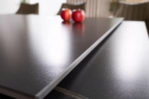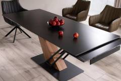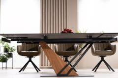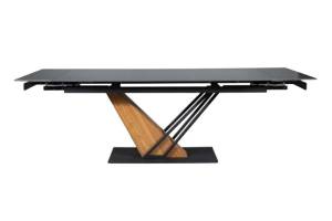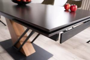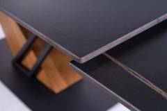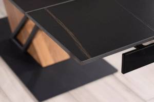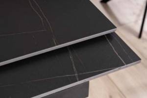 Masa extensibila GENESIS din ceramica cu efect de marmura neagra, metal negru si furnir frasin 160-220x90xH75cm