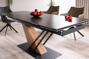 Masa extensibila GENESIS, cu blat din ceramica cu efect de marmura, imbina eleganta cu functionalitatea. Finisajul in nuante de frasin si negru mat adauga un aspect modern si sofisticat oricarui interior!