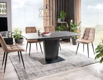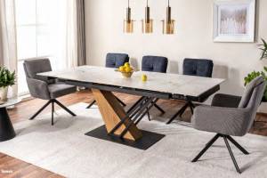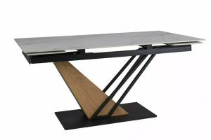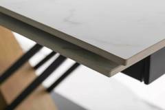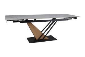 Masa extensibila GENESIS WHITE din ceramica cu efect de marmura alba, MDF cu furnir lemn si metal negru 180-240x90xH75cm