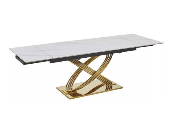 Masa extensibila HERMES CERAMIC II din ceramica cu efect de marmura alba, metal auriu 160-240x90x75cm