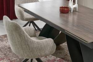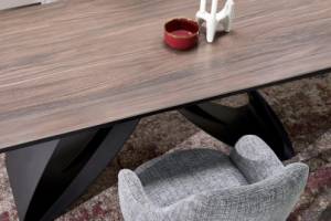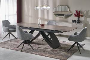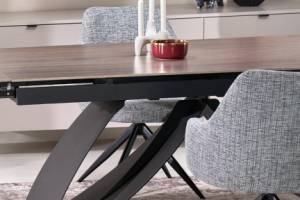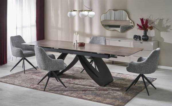 Masa extensibila HILARIO WOOD din piatra sinterizata nuc, metal negru 180-260x90xH75cm
