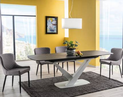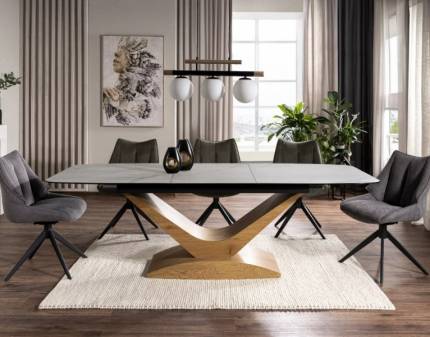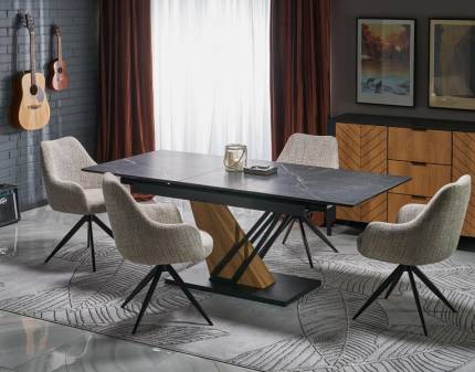 Masa extensibila LORETO CERAMIC din ceramica Italian Ossido Bruno si sticla securizata maro 180-230x90xH76cm
