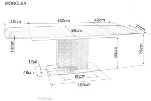 Masa extensibila MONCLER CERAMIC MARINE din ceramica cu efect de marmura italiana Verde Alpi, metal gri argintiu 160-240x90xH76cm