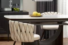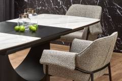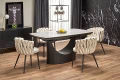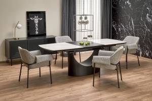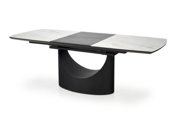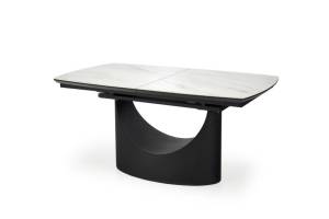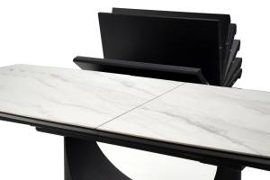 Masa extensibila OSMAN din MDF si ceramica cu efect de marmura alba, metal negru 160-220x90xH77cm