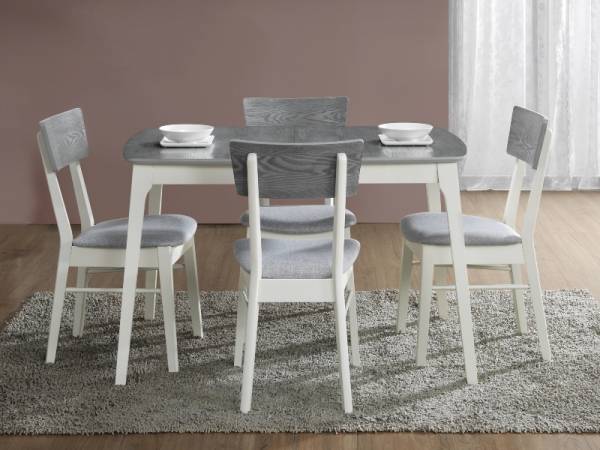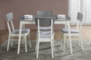Masa extensibila RIMINI din MDF cu furnir natural gri, lemn masiv alb 120-155x80xH75cm