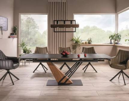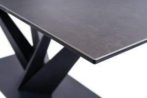 Masa extensibila SORENTO din sticla securizata termorezistenta cu efect de marmura neagra, metal negru 160-220x90xH76cm