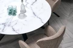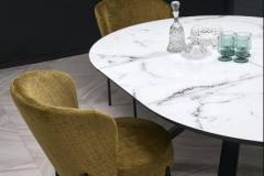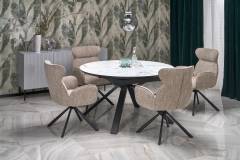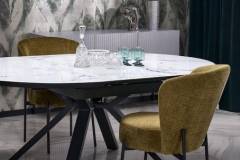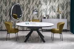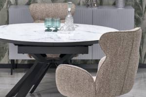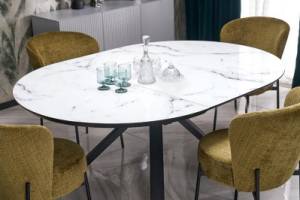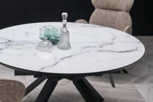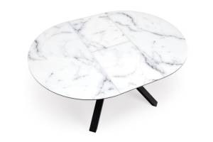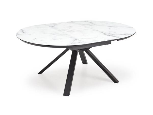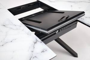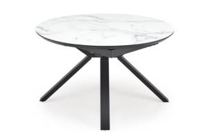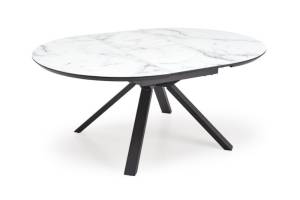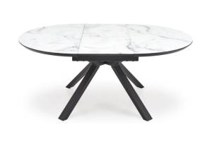 Masa extensibila VERTIGO WHITE din MDF si marmura alba, metal negru 130-180xH76cm