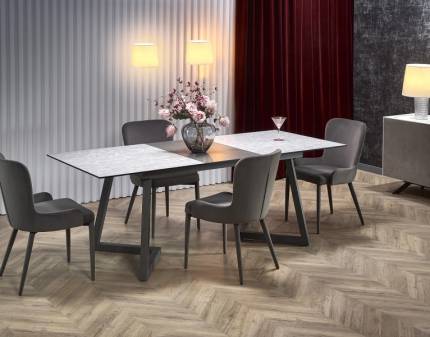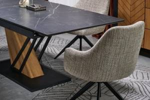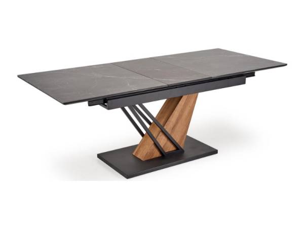 Masa extensibila VOLANT din MDF cu efect de marmura neagra, metal negru si stejar auriu 140-180x90xH76cm
