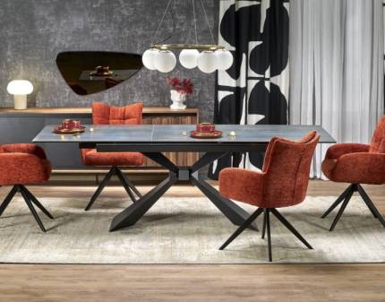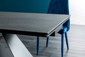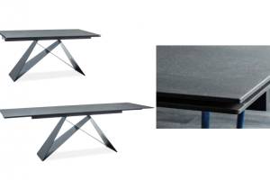 Masa extensibila WESTIN II din sticla securizata termorezistenta cu efect de piatra negru mat, metal negru 160-240x90xH76cm