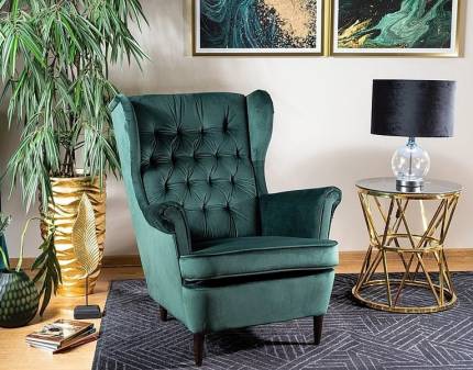 Fotoliu CHESTER VELVET 1 catifea verde, picioare aurii, design chesterfiled 130x97xH67cm