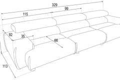Canapea 3 locuri NARA fixa, cu tetiere reglabile, personalizabila 329x113cm