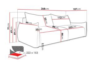 Canapea extensibila CINDY cu lada pentru depozitare, personalizabila 268x107cm