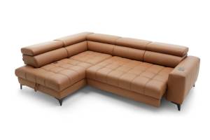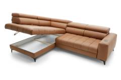 Coltar cu reglaj electric BAGGIO cu lada pentru depozitare, tetiere reglabile, incarcator wireless pentru telefon, personalizabil 280x196cm