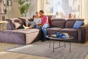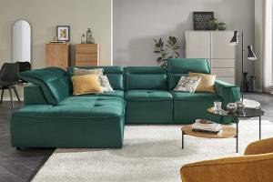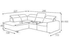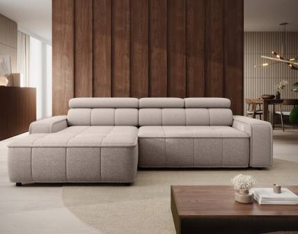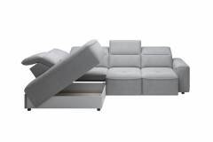 Coltar cu reglaj electric COLOMBO L cu lada pentru depozitare, tetiere reglabile, personalizabil 296x227cm