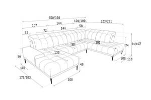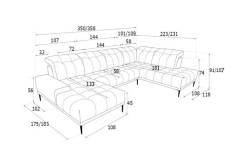 Lungime sezlong lung: 223 / 231 cm