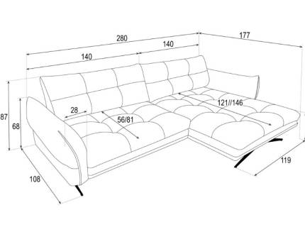Latime sezlong lung: 118 cm