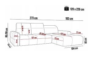 Coltar cu reglaj electric MATEO S cu lada pentru depozitare, tetiere reglabile, personalizabil 273x183cm