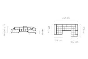 Coltar cu reglaj electric MAVEL XL cu tetiere reglabile, personalizabil 208x367x176cm
