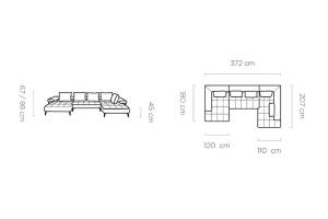 Latime sezlong lung: 207 cm