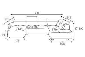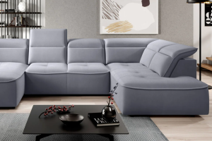Coltar cu reglaj electric MURILLO XL cu lada pentru depozitare, tetiere reglabile, personalizabil 350x218x175cm