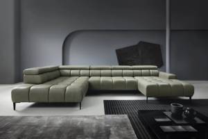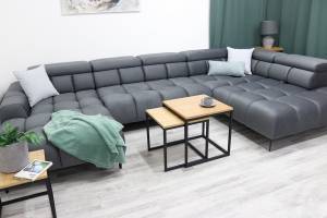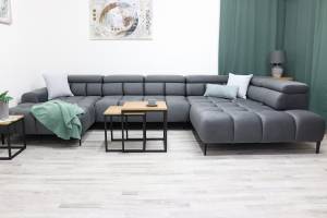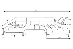 Coltar cu reglaj electric PLAZA XL cu tetiere reglabile, personalizabil 385x216x177cm