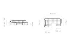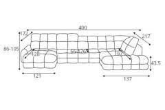 Coltar cu reglaj electric TOLLO XL cu lada pentru depozitare, tetiere reglabile, personalizabil 400x217x171cm