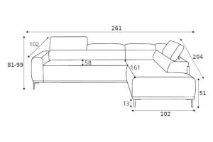 Coltar extensibil (120cm) GANDI cu lada pentru depozitare, tetiere reglabile, personalizabil 261x204cm