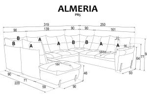 Coltar extensibil ALMERIA 5 cu lada pentru depozitare, personalizabil 250x319x220cm
