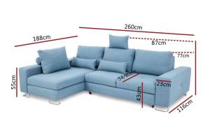 Coltar extensibil ASTI cu lada pentru depozitare, spatar reglabil, personalizabil 260x188cm
