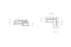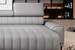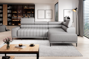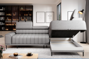 Coltar extensibil CALDO L cu lada pentru depozitare, tetiere reglabile, personalizabil 268x200cm