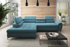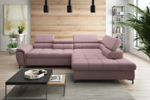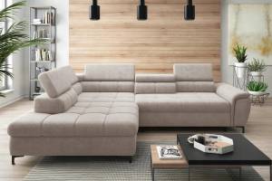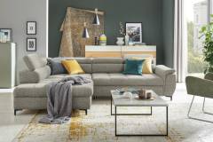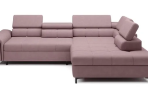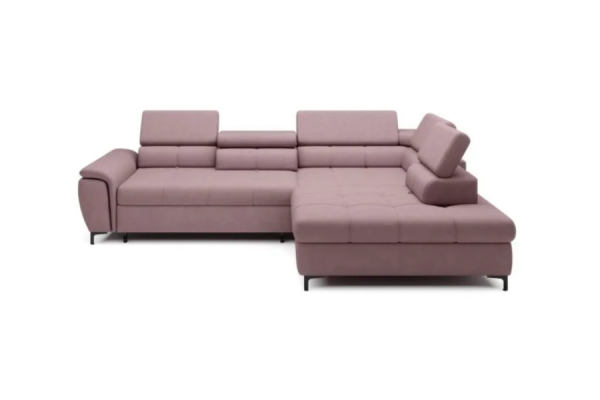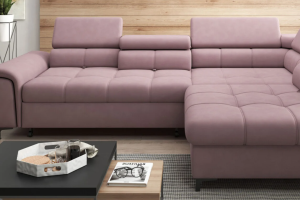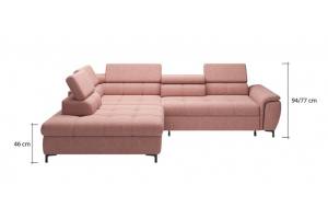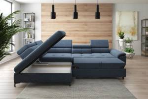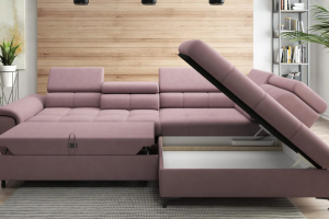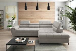 Coltar extensibil DENVO material textil gri, cu lada pentru depozitare, tetiere reglabile, spatar reglabil 290x217cm