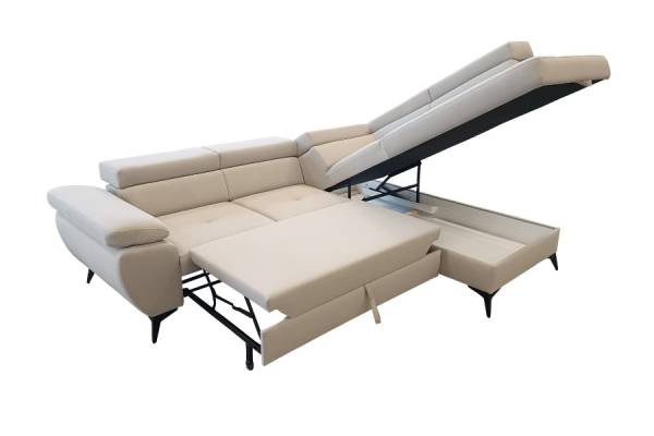 Coltar extensibil FLORIS cu lada pentru depozitare, tetiere reglabile, cotiera reglabila, personalizabil 256x200m