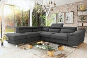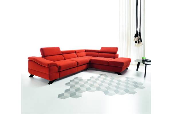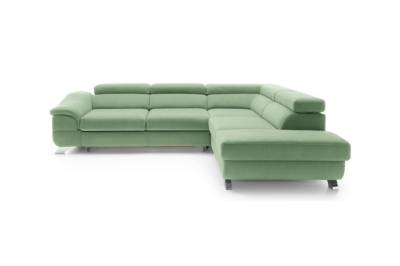 Coltar extensibil LAGOS X cu lada pentru depozitare, tetiere reglabile, personalizabil 272x219cm