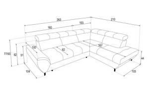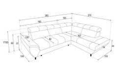 Coltar extensibil MARIO cu lada pentru depozitare, tetiere reglabile, personalizabil 263x210cm