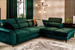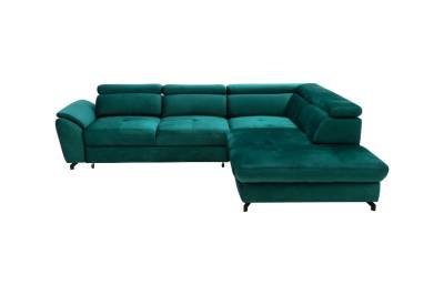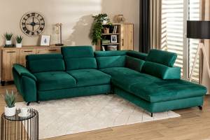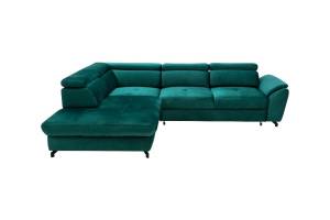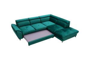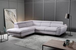 Coltar extensibil MAROLA L cu lada pentru depozitare, tetiere reglabile, personalizabil 277x237cm