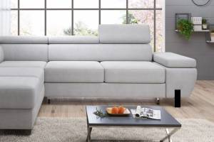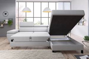 Coltar extensibil MOLINA L cu lada pentru depozitare, tetiere reglabile, personalizabil 263x210cm
