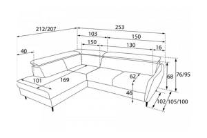 Coltar extensibil OTHELLO cu lada pentru depozitare, personalizabil 253x212cm