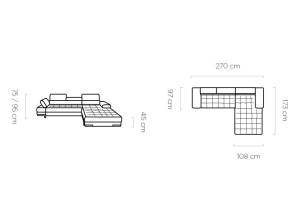 Coltar extensibil SELVA MINI cu lada pentru depozitare, tetiere reglabile, personalizabil 270x173cm