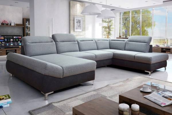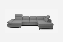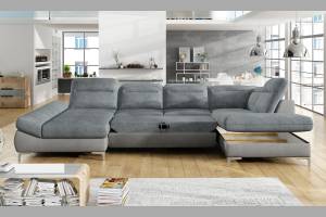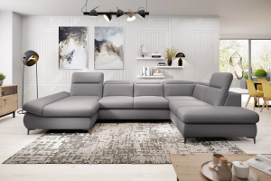 Coltar extensibil TIMOLA XL material textil gri, cu lada pentru depozitare, tetiere reglabile 215x348x175cm