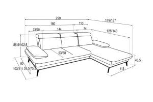 Coltar SANTORINI fix cu tetiere reglabile, spatar reglabil, cotiere reglabile, personalizabil 290x187cm