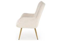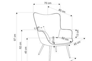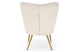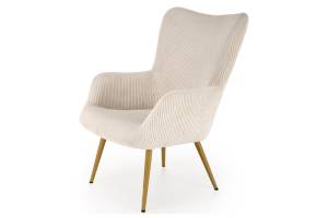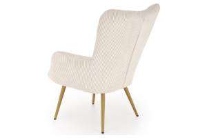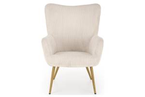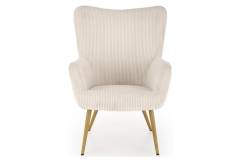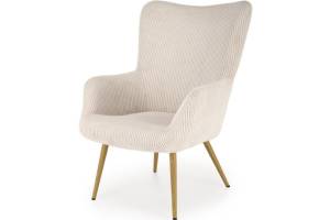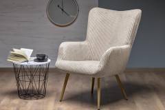 Fotoliu AMARO material plusat-raiat crem, picioare nuanta lemnului, design scandinav 70x80xH97cm
