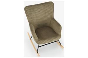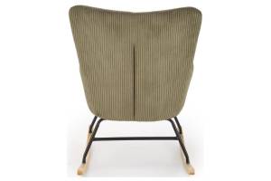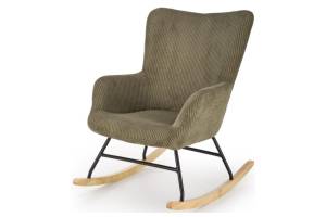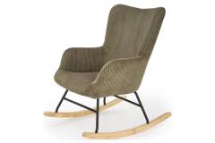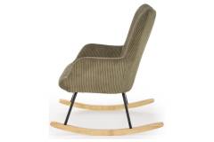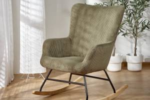 Fotoliu BELMIRO cu functie de balansare, material plusat-raiat olive, picioare nuanta lemnului + negru