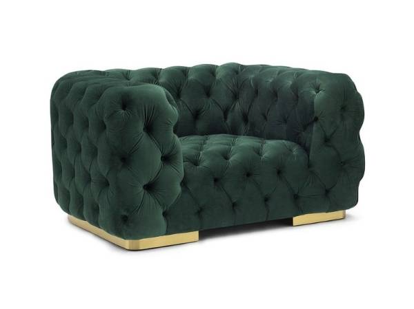 Fotoliu CHESTER VELVET 1 catifea verde, picioare aurii, design chesterfiled 130x97xH67cm